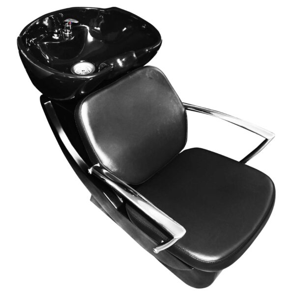 Shampoo Chair with a classic chair in Black 018 with stainless steel handles.