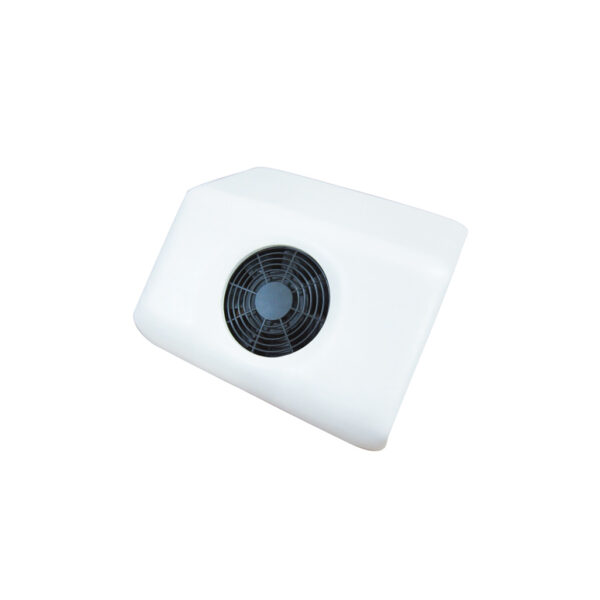 Table-top padded dust collector for a clean and professional nail manicure. The fan extractor sucks all dust and debris and filters through fabric bag.