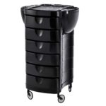 Trolley equipped with six interchangeable sliding drawers, suspandable on both sides. Spaces for placing tanks and bottles and supports for hairdryer.